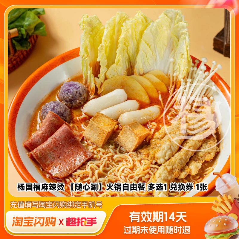 餐饮美食卡券 【官播专享】淘宝闪购杨国福麻辣烫优惠套餐兑换券淘宝闪购兑换券