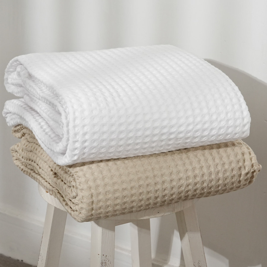 床上用品 外单尾单水洗纯棉华夫格蜂巢床单透气柔软