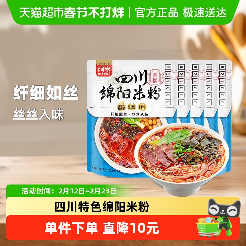 粮油调味/速食/干货/烘焙 阿宽陈记食品四川绵阳米粉非油炸更健康方便面175g*5袋速食美食