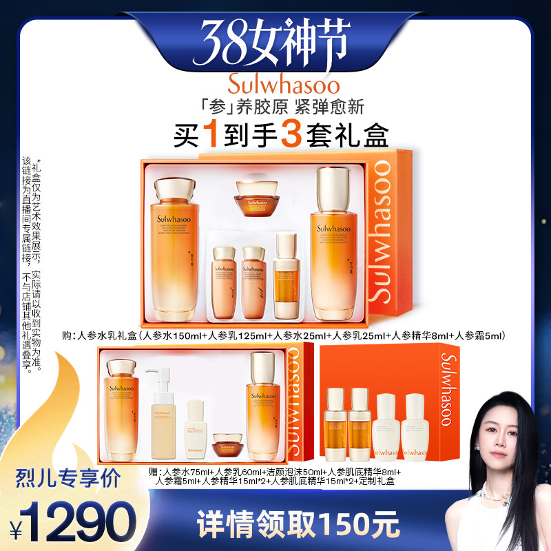 美容护肤/美体/精油 【先加购!24号烈儿0元付定】雪花秀人参水乳礼盒护肤品保湿修护