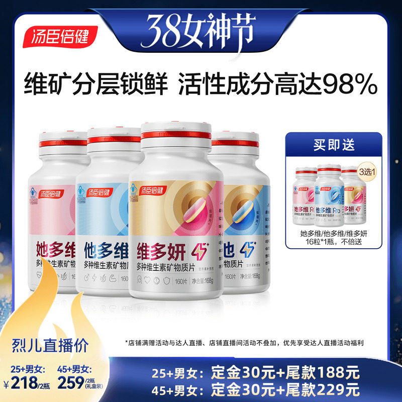 保健食品/膳食营养补充食品 【先加购!24号烈儿0元付定】汤臣倍健她多维双层片分龄维生素直播