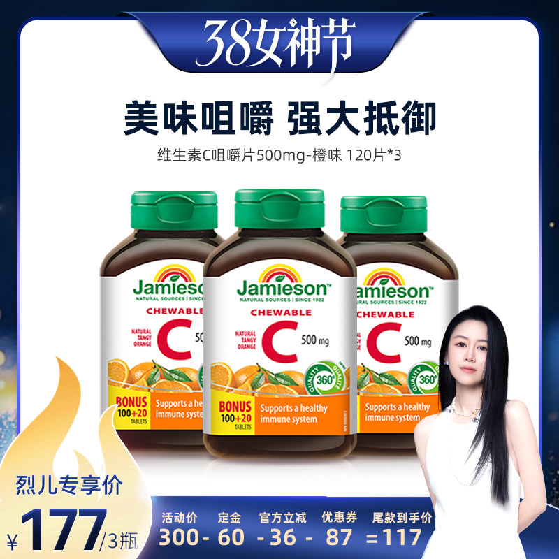 保健食品/膳食营养补充食品 【先加购!24号烈儿0元付定】健美生维生素c天然维他命片120粒*3