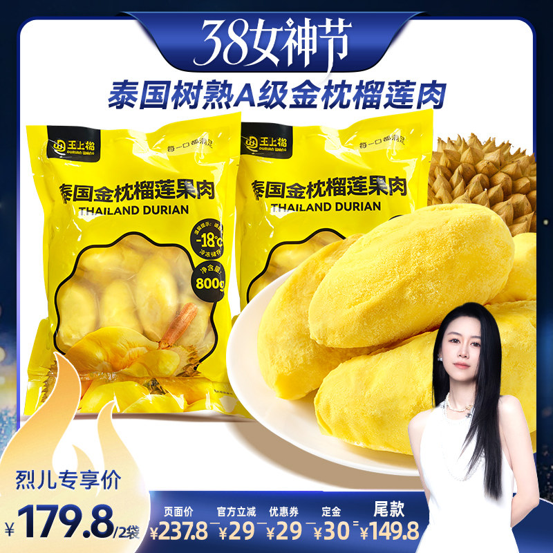 水产肉类/新鲜蔬果/熟食 【先加购!24号烈儿0元付定】王上榴泰国进口金枕冷冻树熟榴莲肉