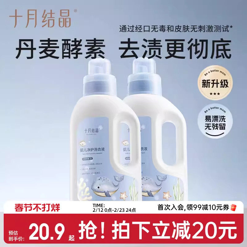 婴童洗护 十月结晶婴儿洗衣液新生儿宝宝专用母婴大人通用酵素洗衣皂液用品