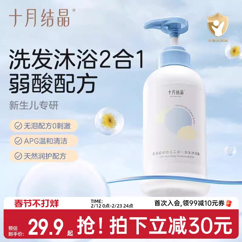 婴童洗护 十月结晶婴儿金盏花沐浴露洗发水二合一宝宝儿童新生用品专用组合