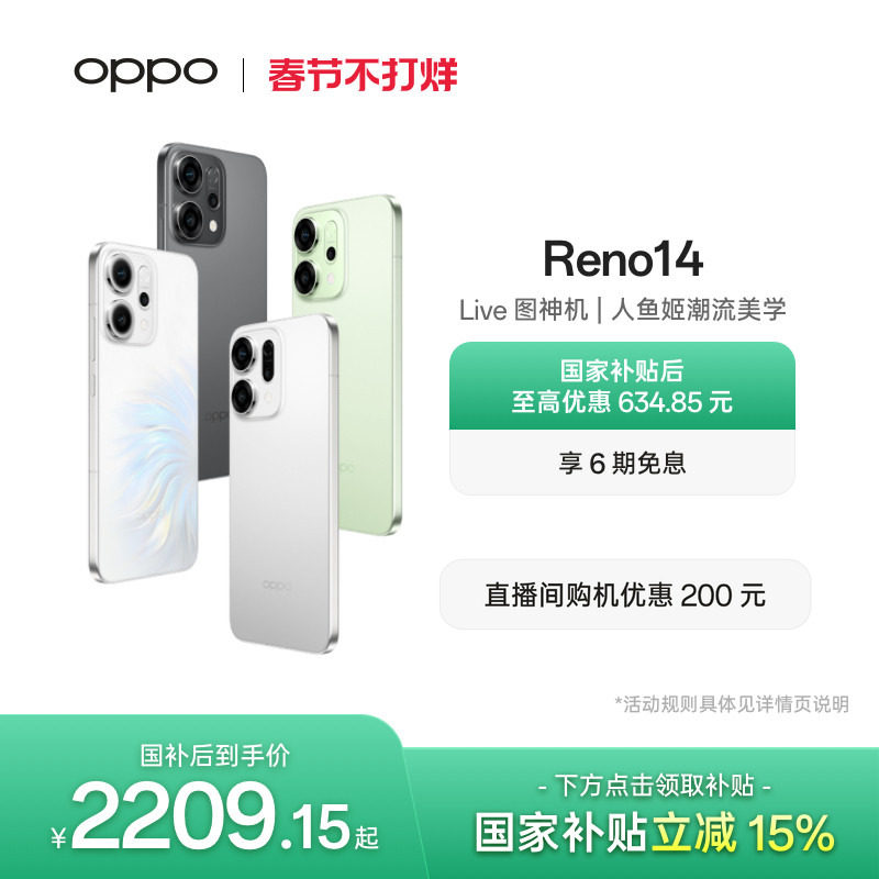 手机 OPPO Reno14 Pro 直播神器手机学生智能拍照手机政府补贴高清长焦实况照片 人鱼姬潮流配色oppo官方旗舰店