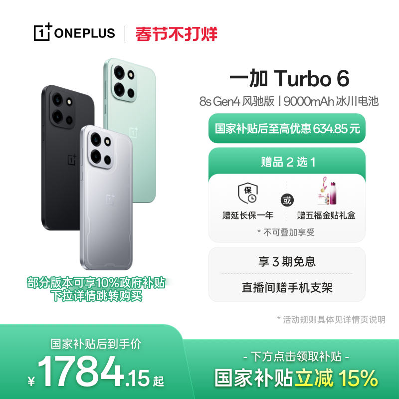 手机 【OnePlus】OPPO 一加 Turbo 6 新品上市学生电竞AI骁龙游戏手机大电池一加官方旗舰店官网正品政府补贴国补