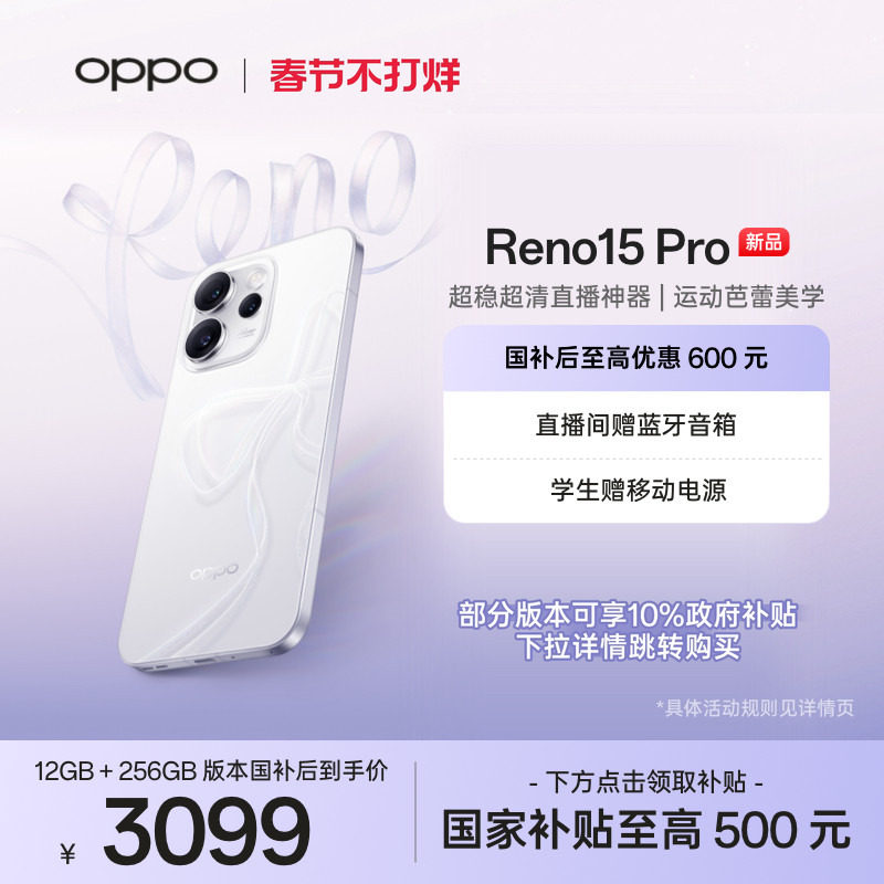 手机 新品上市 OPPO Reno15 Pro手机政府补贴正品新款学生智能超稳超清直播神器oppo手机官方旗舰店opporeno15pro