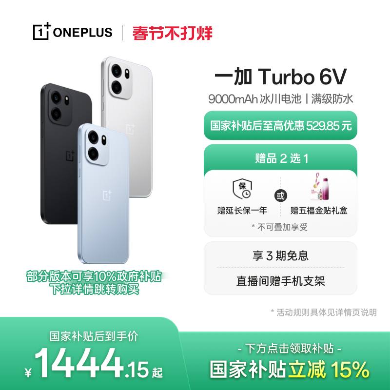 手机 【政府补贴】OPPO 一加 Turbo 6V 9000mAh 冰川电池满级防水学生电竞AI游戏手机一加官方旗舰店官网正品国补