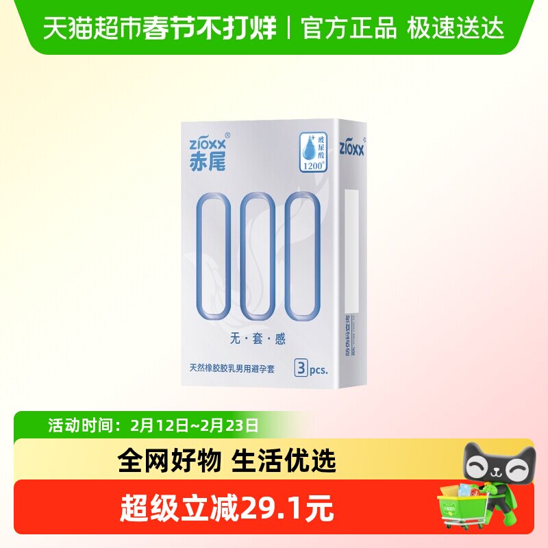 计生用品 赤尾避孕套000超薄安全套3只*2盒玻尿酸加倍润滑套套男用成人用品