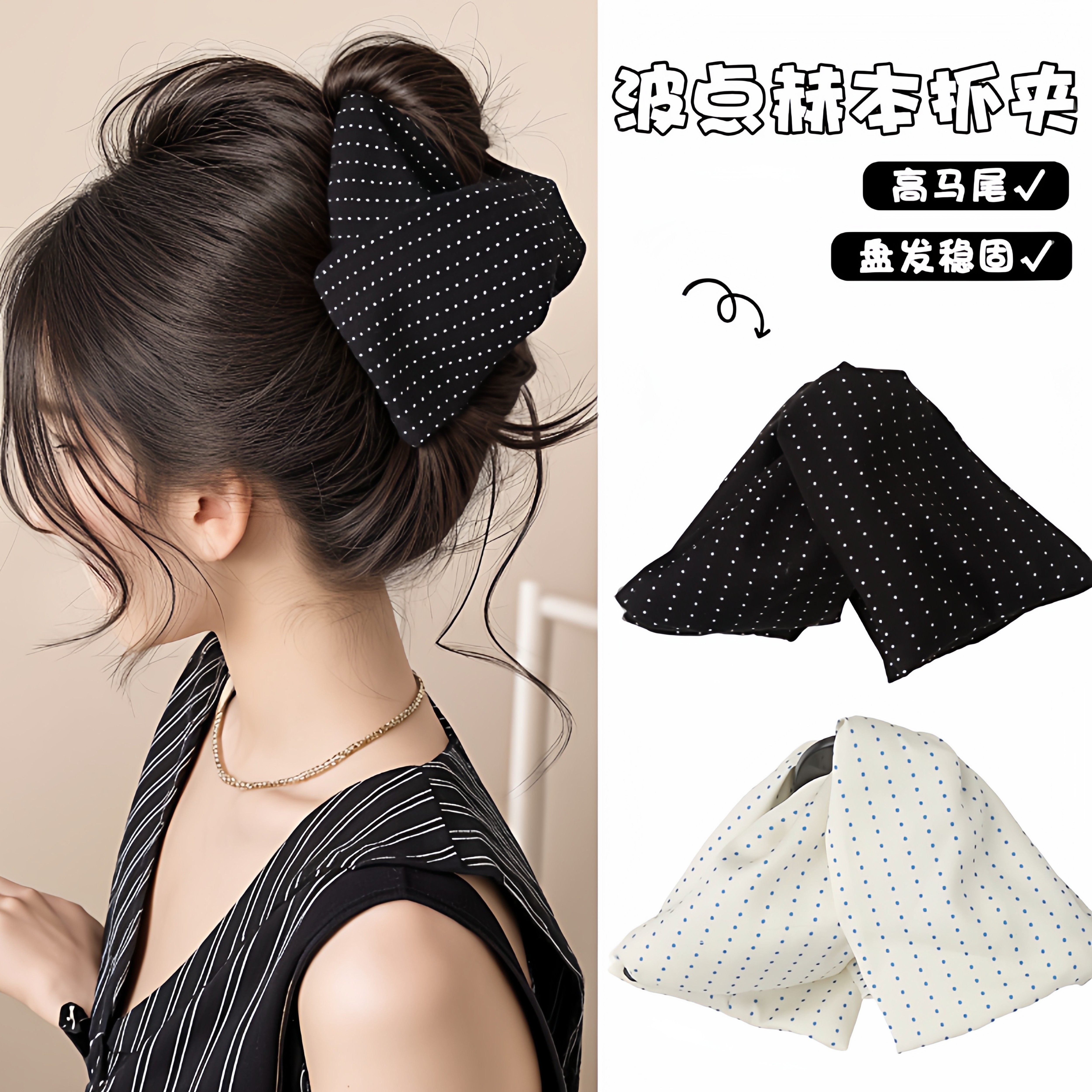饰品/流行首饰/时尚饰品新 法式赫本风布艺波点抓夹时尚气质后脑勺发夹盘发鲨鱼夹子韩国发饰