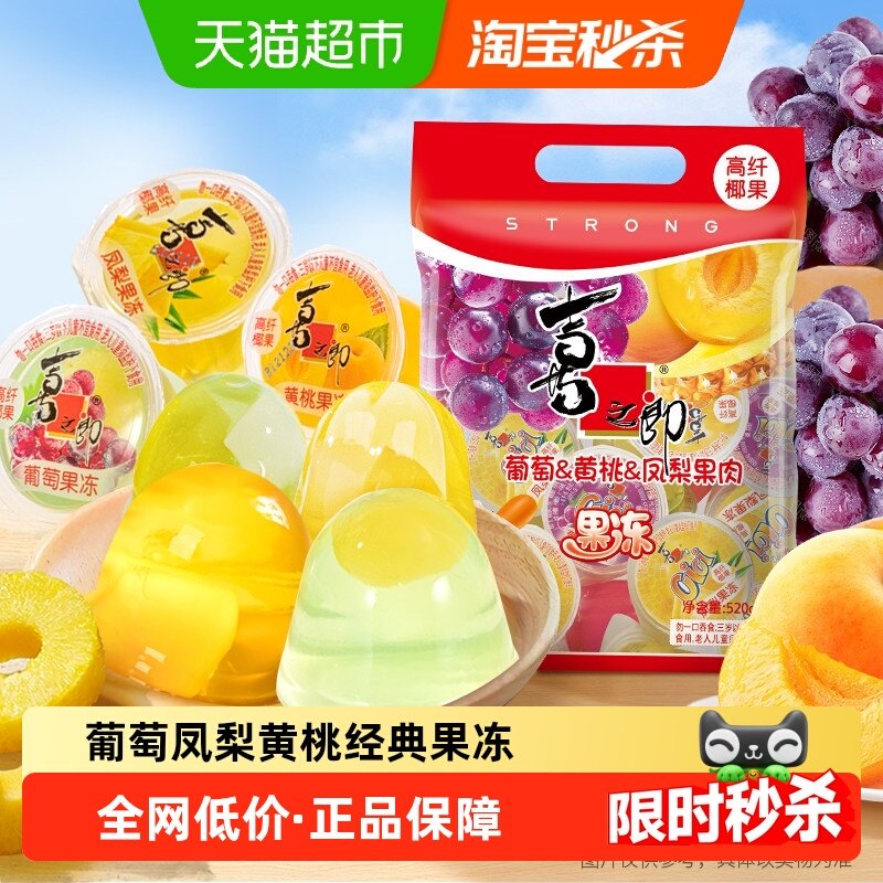 零食/坚果/特产 喜之郎葡萄凤梨黄桃椰果果冻520g*1袋水果肉休闲零食小吃儿童甜品