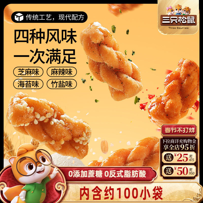 零食/坚果/特产 三只松鼠_麻花量贩装香酥小麻花混合味整箱办公室休闲零食糕点