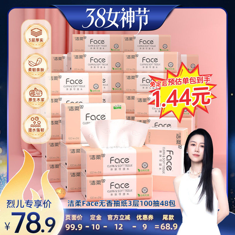 洗护清洁剂/卫生巾/纸/香薰 【先加购!24号烈儿0元付定】洁柔抽纸3层100抽48包家庭实惠装