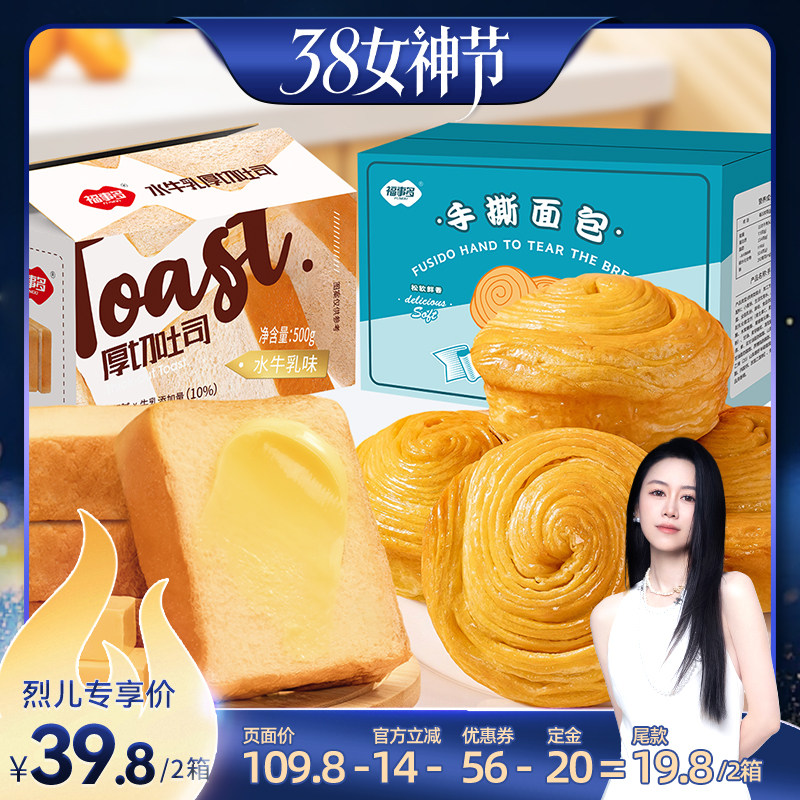 零食/坚果/特产 【先加购!24号烈儿0元付定】福事多水牛乳厚切吐司手撕面包组合