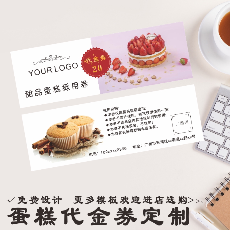 文具电教/文化用品/商务用品 蛋糕甜品店代金券/面包烘培优惠券设计/抵用卷名片菜单印刷订制作