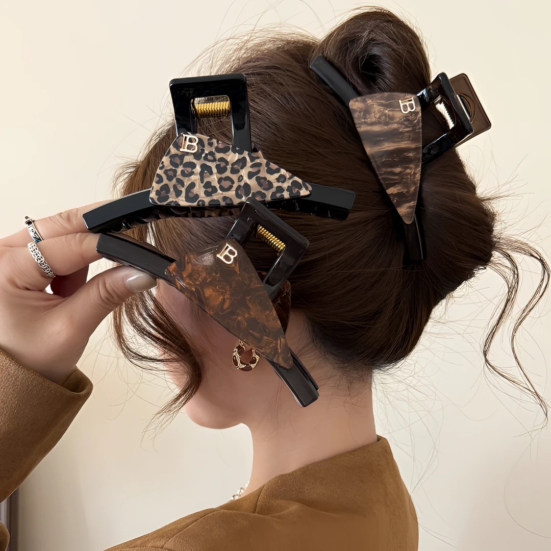 饰品/流行首饰/时尚饰品新 MIMILINE气质网红时尚简约秋冬法式复古高级感豹纹抓夹鲨鱼夹