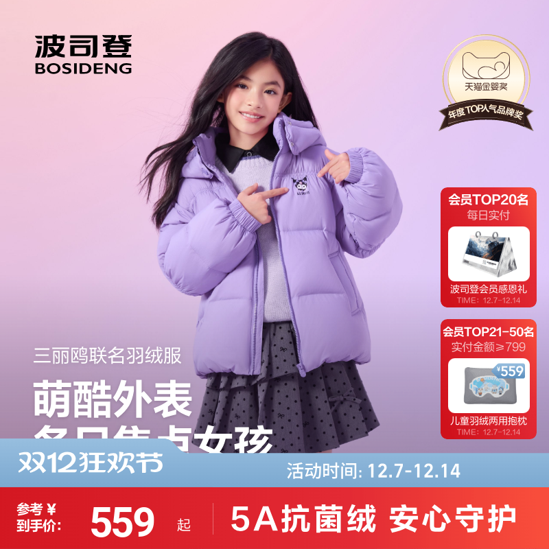 童装/婴儿装/亲子装 【酷洛米25冬新品】波司登儿童羽绒服女童三丽鸥宝宝小泡芙外套
