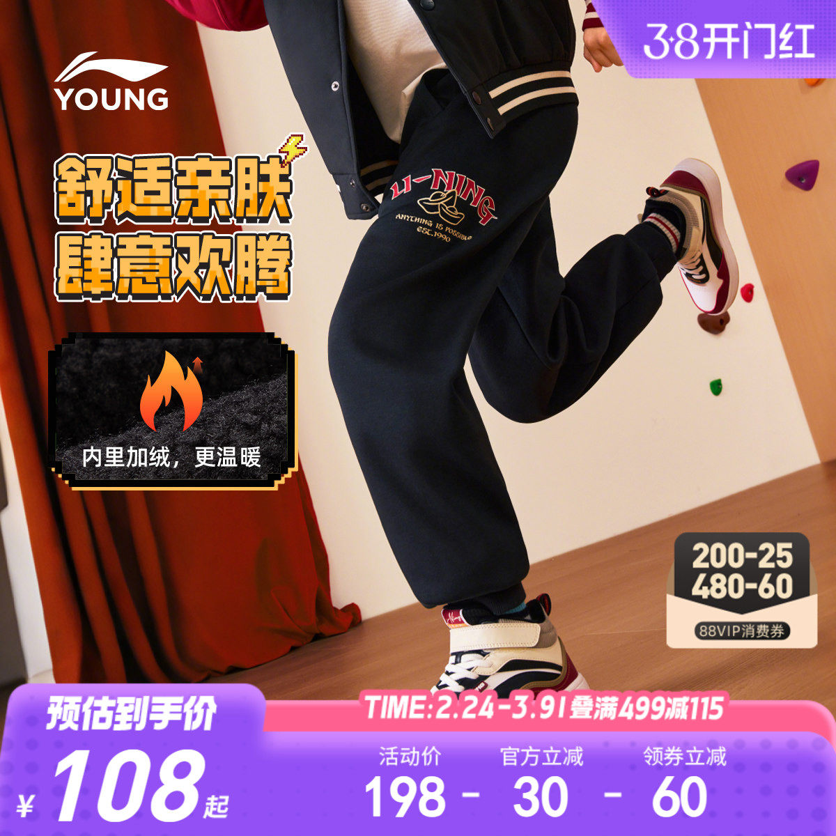 童装/婴儿装/亲子装 新年款|李宁儿童加绒卫裤2026马年本命年裤子男童装女过年运动裤