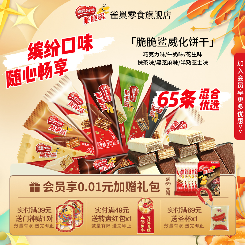 零食/坚果/特产 官方旗舰店雀巢脆脆鲨威化饼干巧克力牛奶味零食散装混合口味小吃