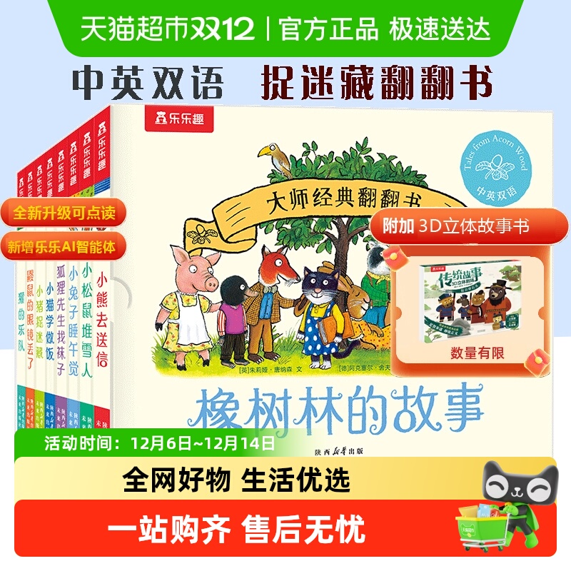 书籍/杂志/报纸 乐乐趣 橡树林的故事8册 中英双语宝宝翻翻书绘本波西和皮普作者
