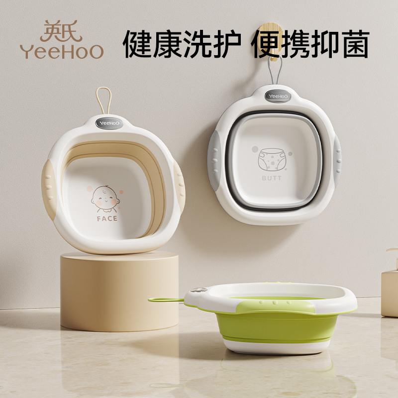 婴童用品 英氏婴儿洗脸盆新生婴儿专用宝宝初生可折叠小盆三件套幼儿洗屁屁