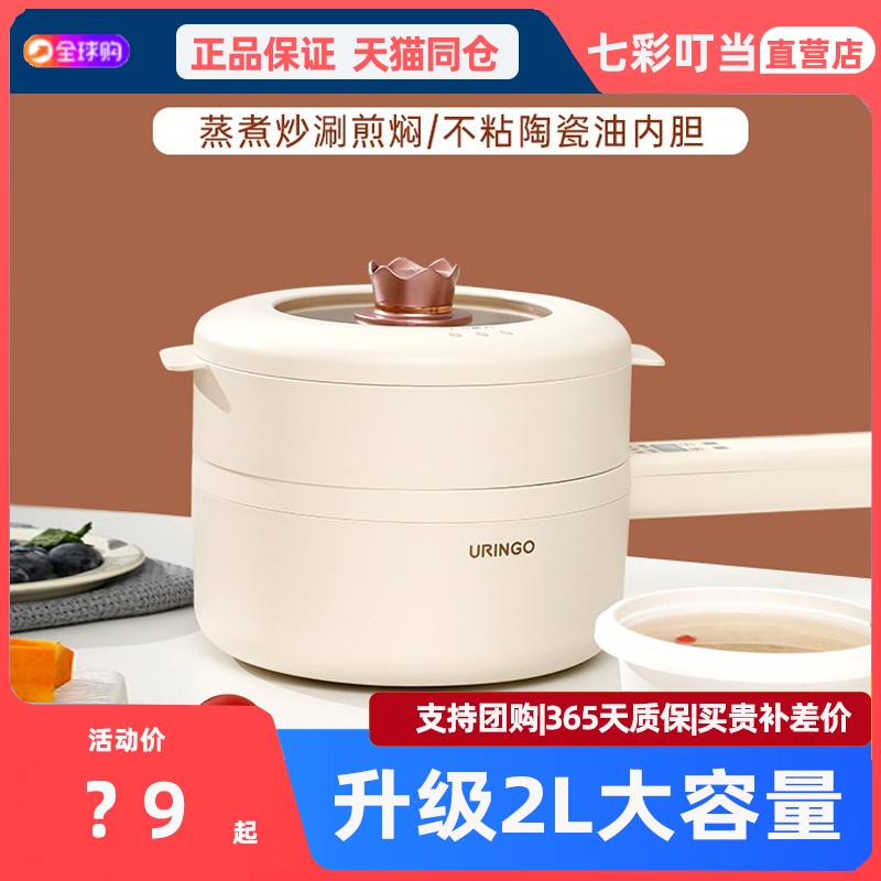 厨房电器 七彩叮当URINGO电煮锅炒锅多功能型煮面学生宿舍煮饭粥火锅家用小