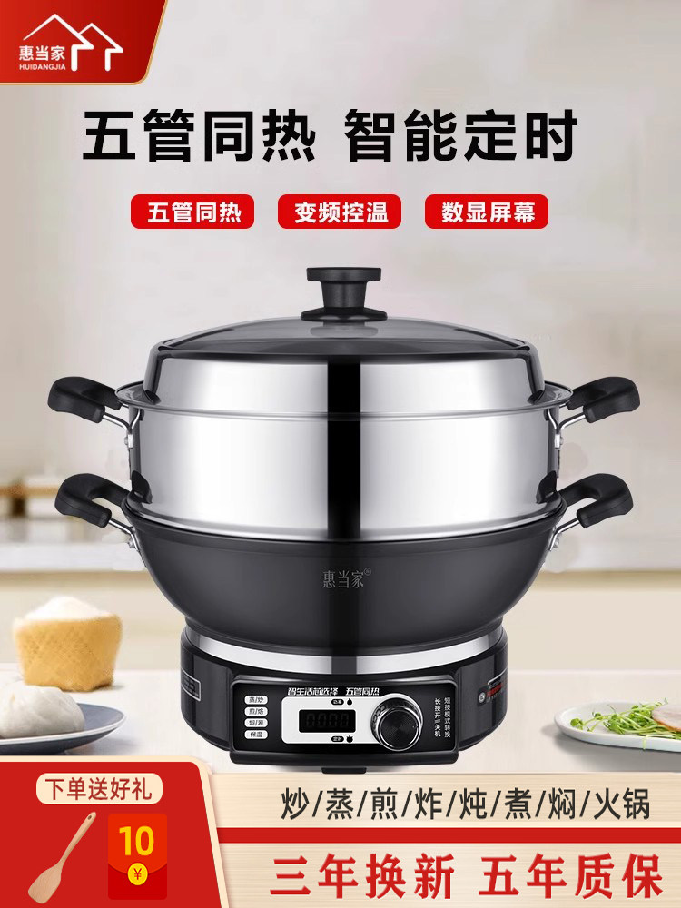 厨房电器 惠当家电炒锅多功能家用电热锅铸铁电炒菜爆炒蒸煮炖煎一体式电锅