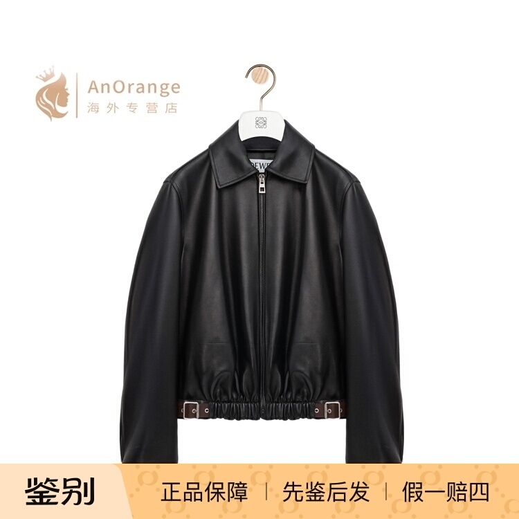 男装 Loewe/罗意威女装外套2026新款黑色羊皮经典翻领拉链长袖夹克
