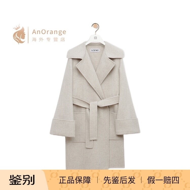 男装 Loewe/罗意威女装外套2026新款浅灰色羊绒经典翻领系腰带长袖大衣