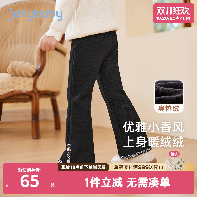 童装/婴儿装/亲子装 女童秋冬休闲裤微喇复古儿童冬季加绒花边长裤薄绒小宝宝薄绒裤子