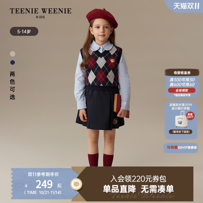 童装/婴儿装/亲子装 TeenieWeenie Kids小熊童装25年新款女童亲子学院菱形毛织背心