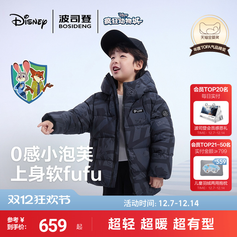 童装/婴儿装/亲子装 【疯狂动物城】波司登2025冬季新款泡芙男童加厚超轻羽绒服女童