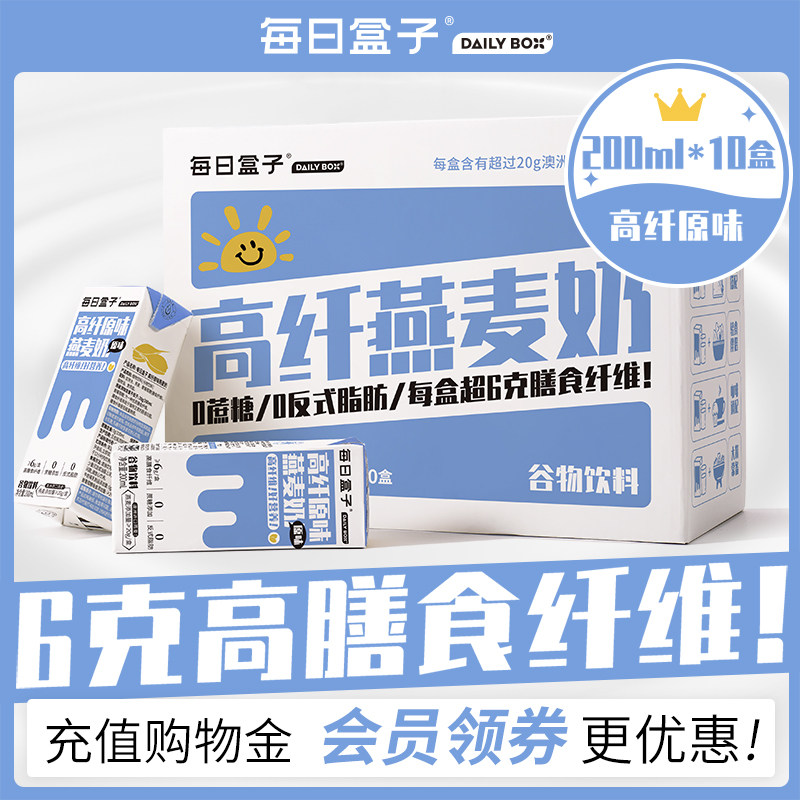 咖啡/麦片/冲饮 每日盒子高膳食纤维燕麦奶200ml*10盒装0蔗糖0香精营养早餐植物奶