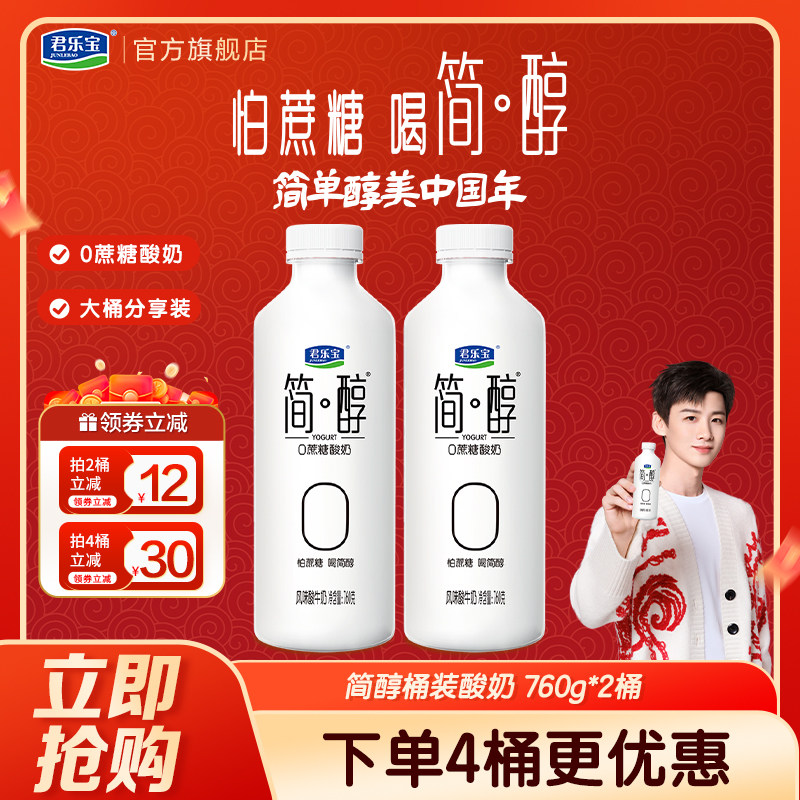 咖啡/麦片/冲饮 君乐宝简醇0蔗糖酸奶大桶760g量贩装风味酸牛奶简醇低温酸奶