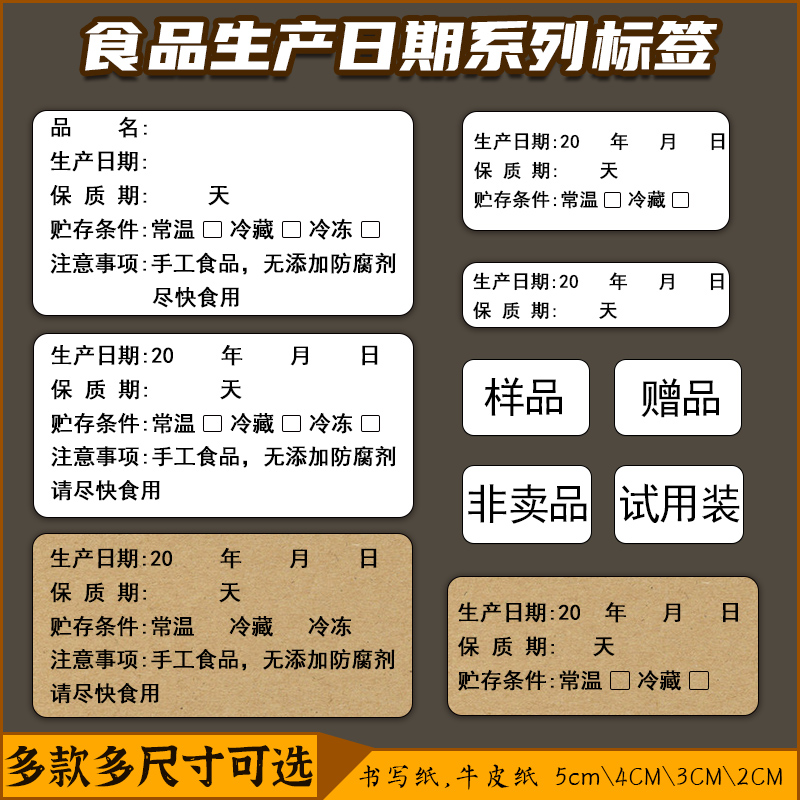 个性定制/设计服务/DIY 9.9包邮非卖品贴纸赠品标签牛皮纸自粘性样品标食品生产日期标签