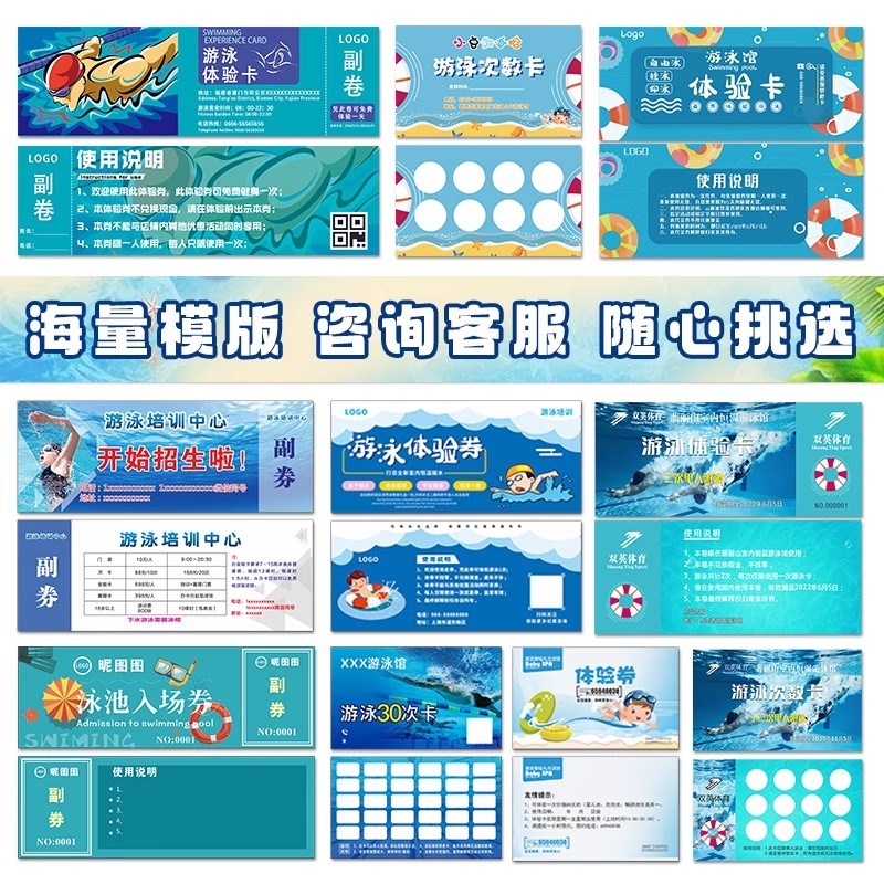 文具电教/文化用品/商务用品 游泳票体验券定制泳池馆广告宣传优惠券设计logo培训班代金券正副