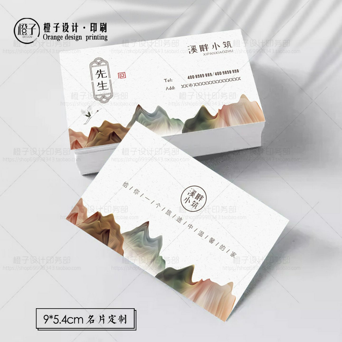 文具电教/文化用品/商务用品 中式民宿旅馆名片简约高端酒店名片餐馆优惠券定制设计开业宣传单