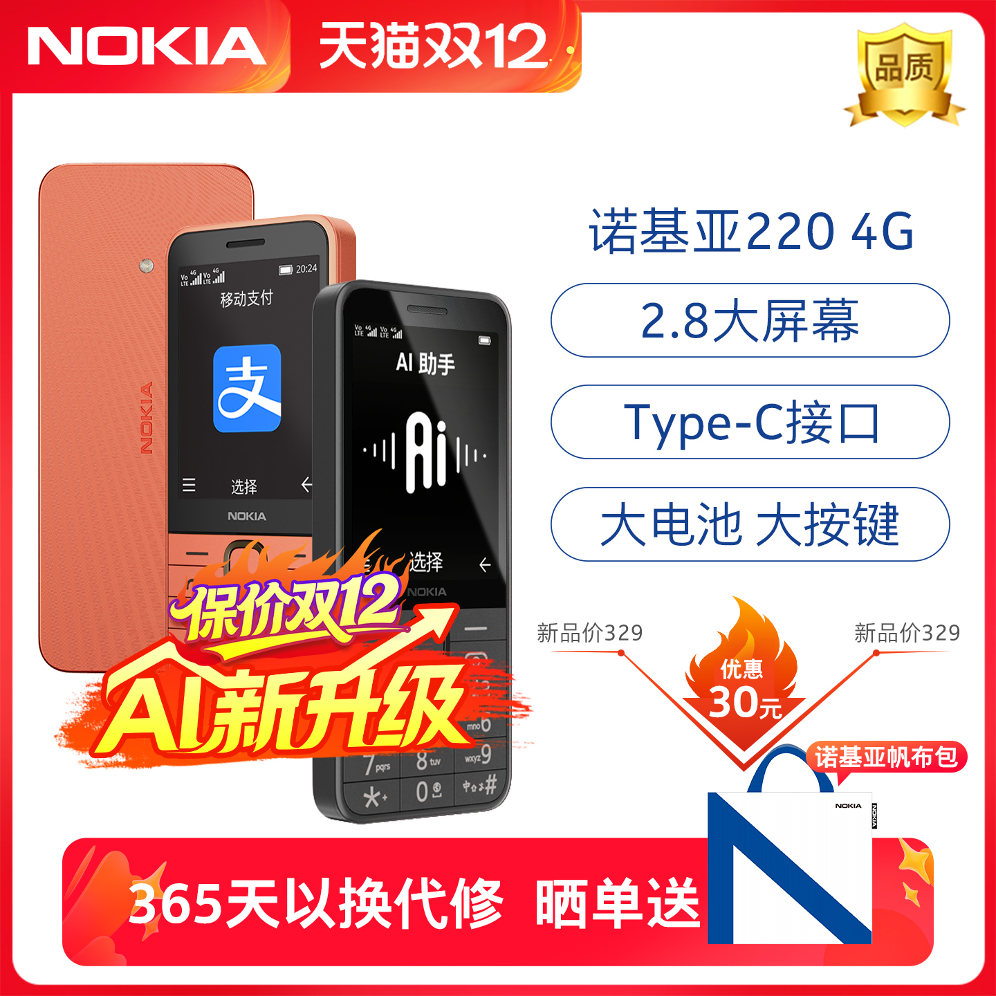 手机 【新品2.8大屏】诺基亚220 4g老年老人手机小初高中生按键大声音超长待机电信学生老年机官方旗舰店2024新款