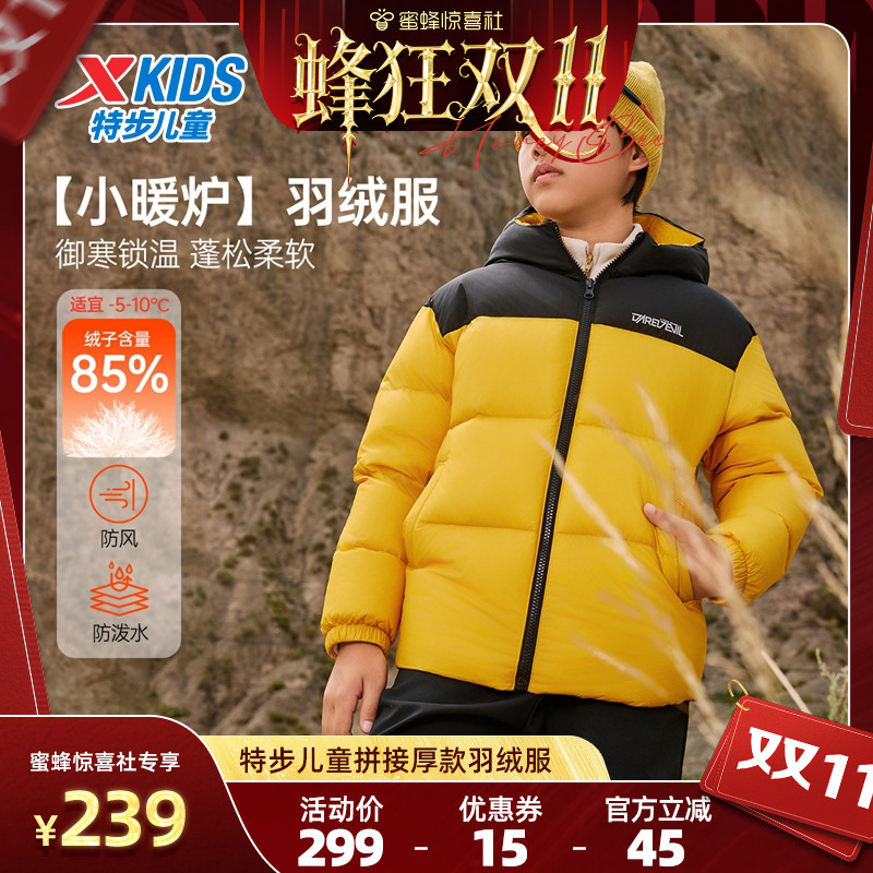 童装/婴儿装/亲子装 【蜂狂双11】特步童装秋冬新款儿童羽绒服男大童防寒保暖连帽外套