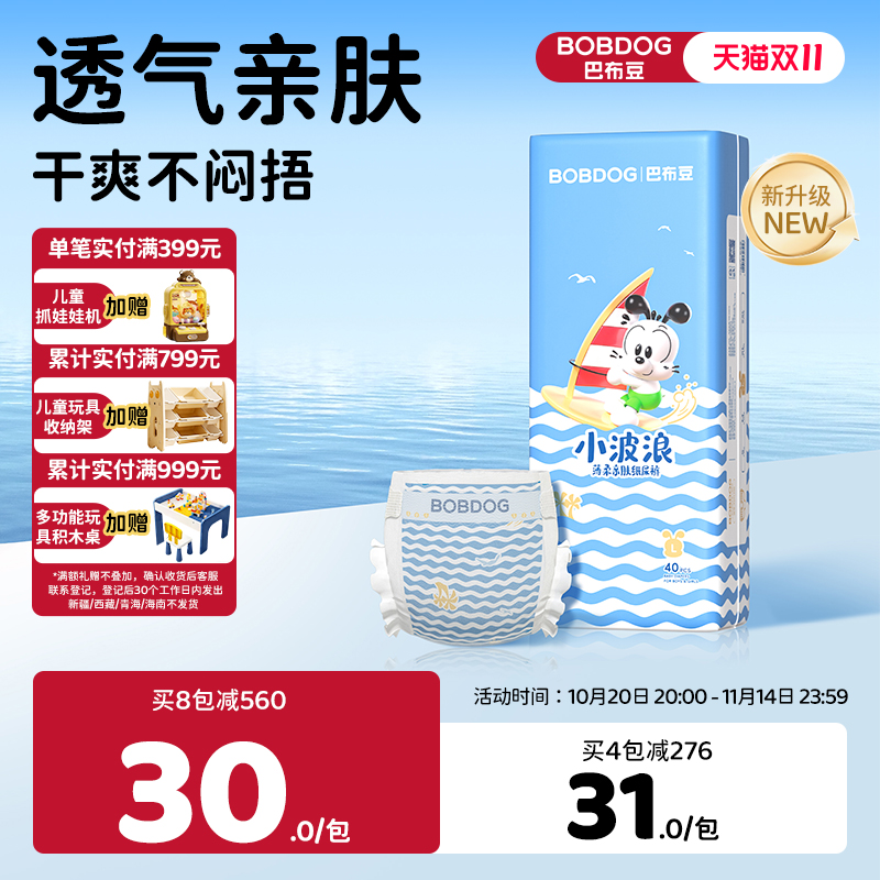 婴童尿裤 巴布豆小波浪拉拉裤超薄透气干爽纸尿裤婴儿专用一次性尿不湿