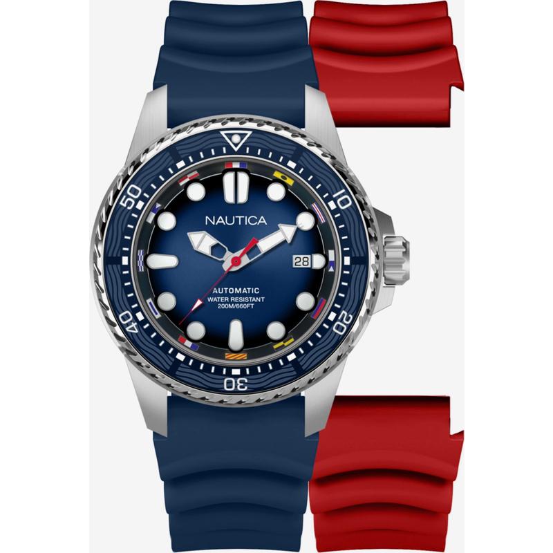 手表 代购nautica诺帝卡男士腕表自动上链日期显示夜光指针测速刻度金