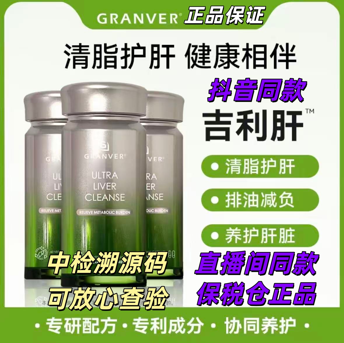保健食品/膳食营养补充食品 Granver吉利肝美国进口肝脏调理熬夜加班专利清脂护旰胶囊保正品