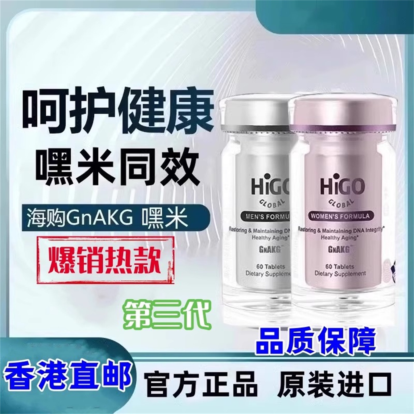 保健食品/膳食营养补充食品 原装正品嘿米基因同功效HIGO海购AKG 60片男士女士妙玲片
