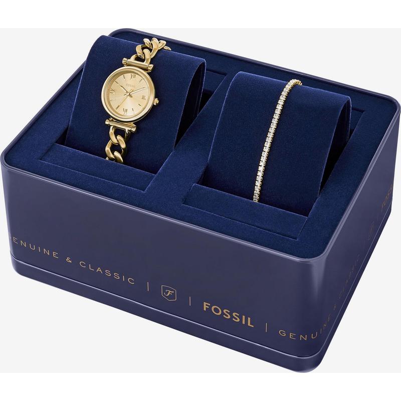手表 代购Fossil化石女士腕表计时夜光日期防水金属金色链式镶钻商务送