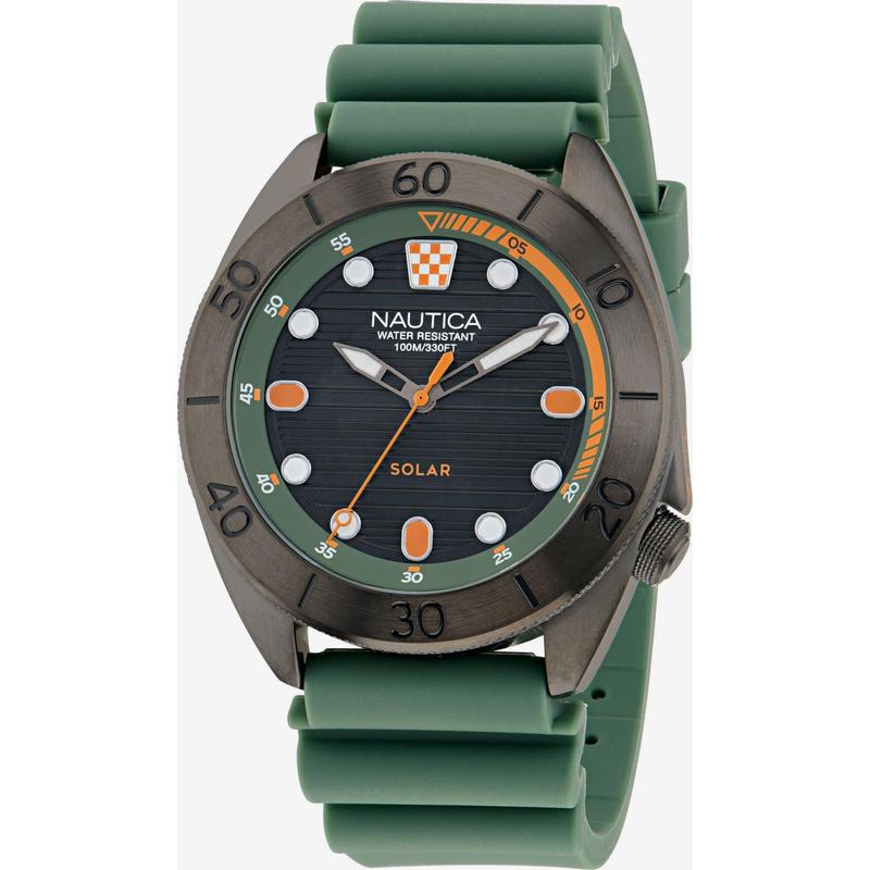 手表 代购nautica诺帝卡男士腕表太阳能夜光计时防水橡胶带金属壳