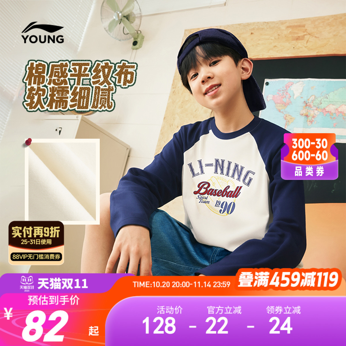 童装/婴儿装/亲子装 李宁儿童快速吸汗速干长袖T恤2025新款秋冬款男童装女童宽松秋装
