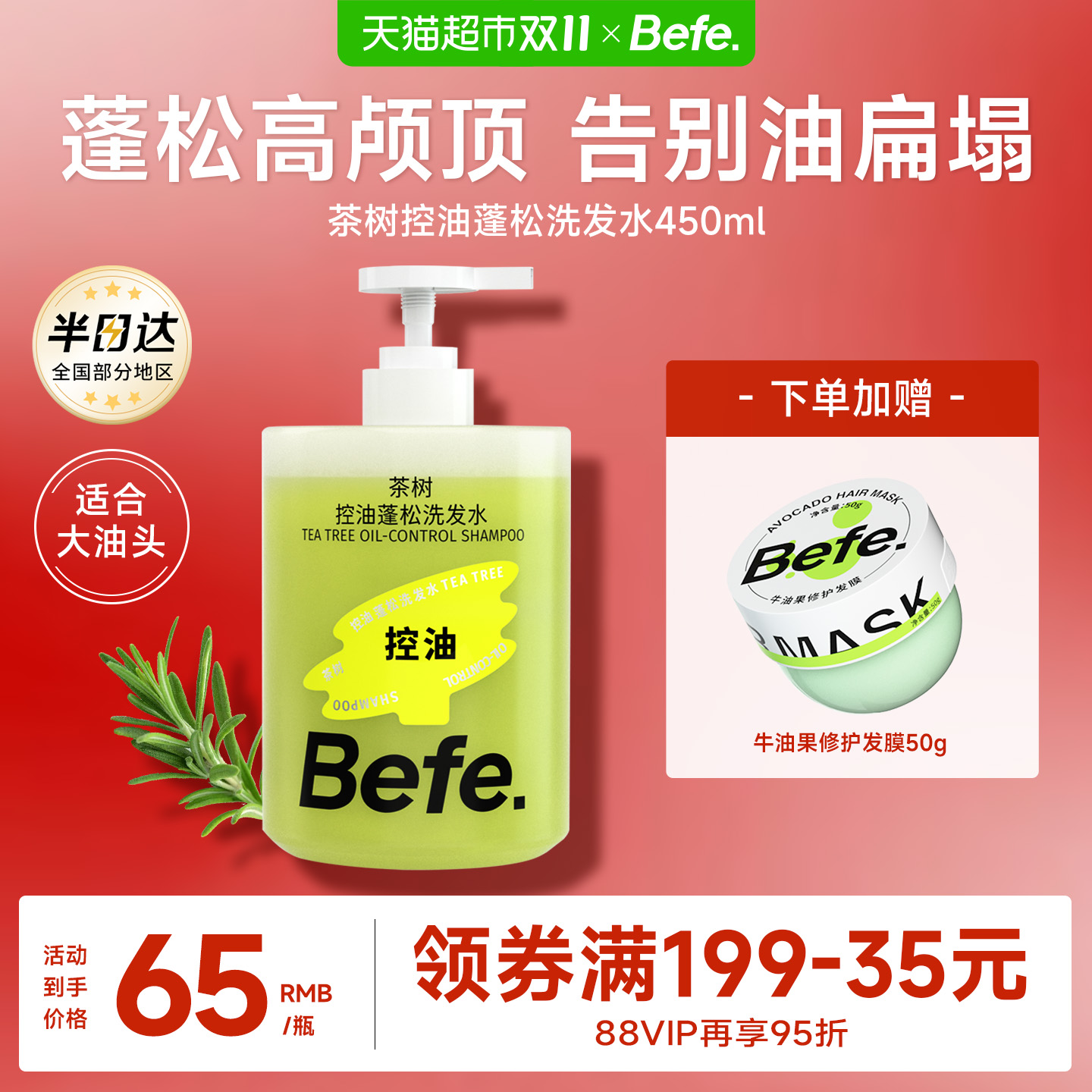 美发护发/假发 befe茶树控油蓬松洗发水多肽滋养头皮温和柔顺强韧防断发洗头膏