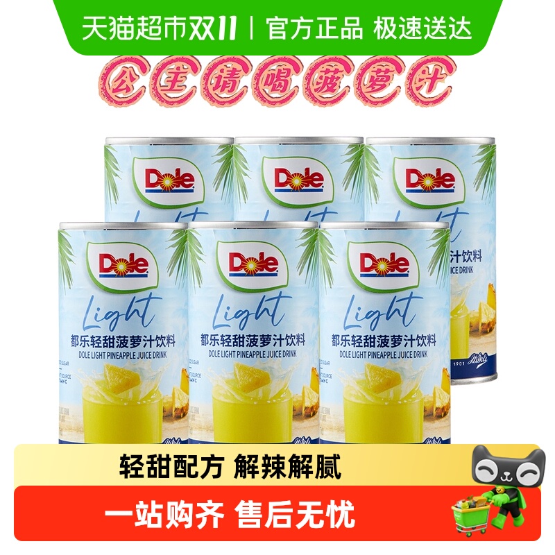 咖啡/麦片/冲饮 Dole都乐进口轻甜菠萝汁果汁饮料饭搭子节日聚会饮品