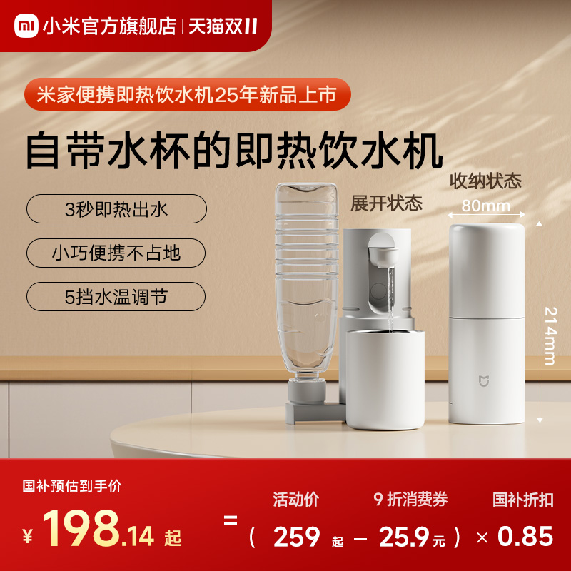 厨房电器 小米米家便携式即热式饮水机家用小型桌面台式直饮净水电热杯两用